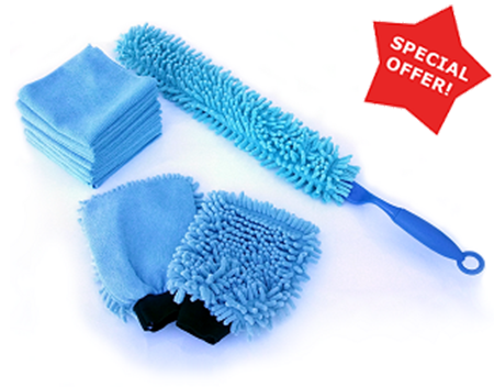 Keep your car looking its best. This kit includes a 100% microfiber car duster (25" long), 2 100% microfiber wash mitts and 6 microfiber cloths